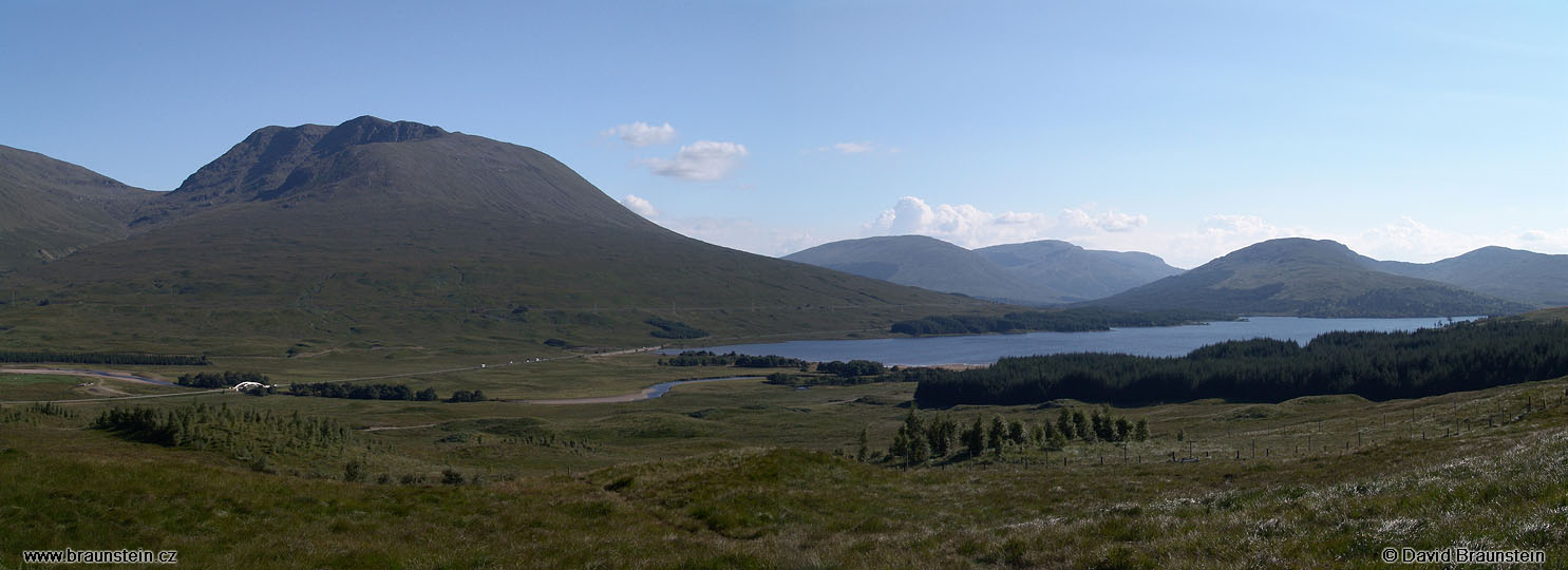 krajina, pohled, cizí zem, hory, kopce, cestopis, cízí zem, 2004 0803, skotsko, loch tulla, les, louka, hora, kopec, jezero