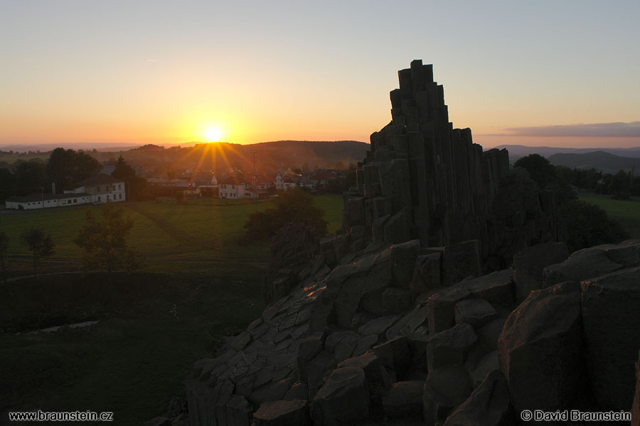 - krajina, krajinný celek, česká republika, západ slunce, skála, liberecký kraj, české středohoří, okres česká lípa, panská skála, sloupcovitá odlučnost čediče, slunce a světlo