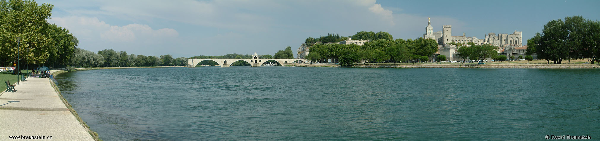 krajina, cizí zem, řeka, hrad, most, most pro auta, cestopis, francie, 2003-0809, rhéna, avignon, stromy