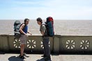turisti, překonávají potok